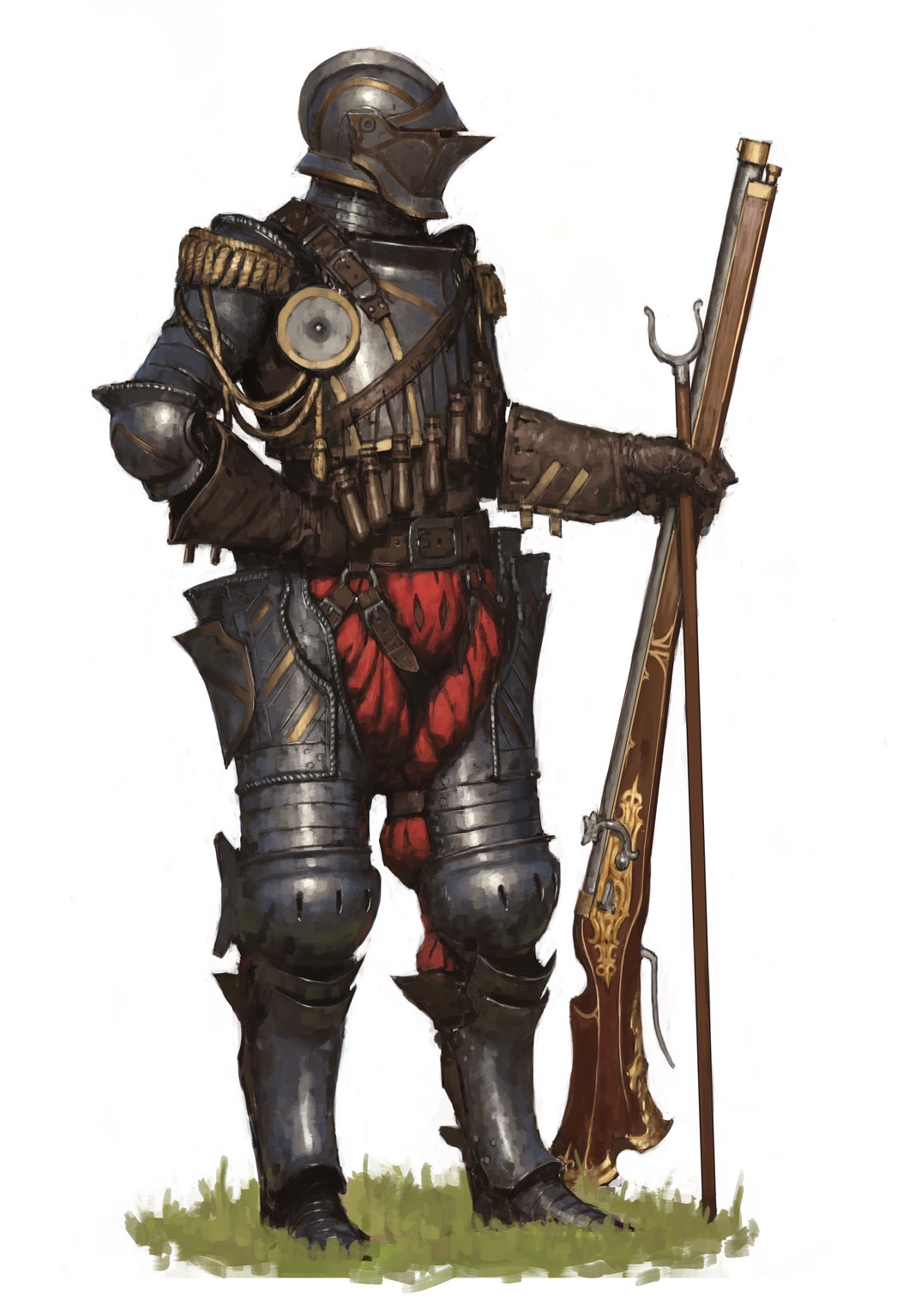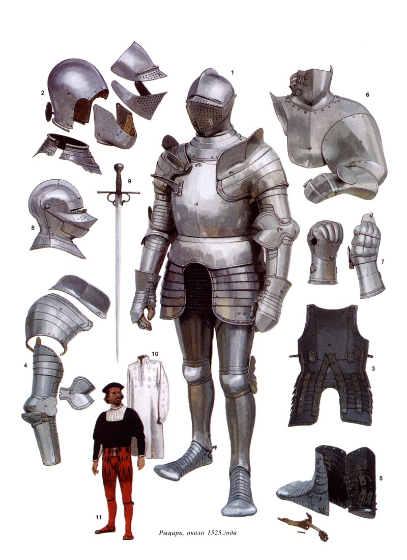 >>563019 Обычно доспехи были серой полированной сталью, у более знатных в 16 веке могли быть с позолотой, или еще с какой нибудь отделкой типа гравировки, а в 17 веке почти все латы красили в черный или воронили.