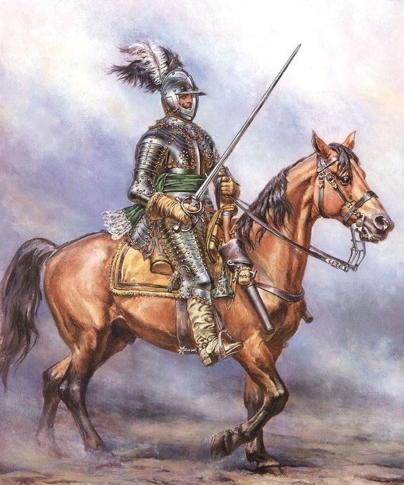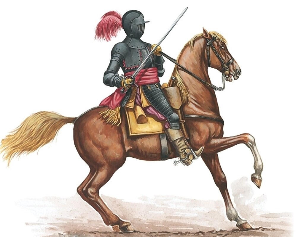 Подъезжаем, стреляем из пистолетов по пикинерам или тычем длинными кавалерийскими пиками (уж какой у нас там год) ловим пули аркебуз лучшей броней, врубаемся в строй пехоты, откатываемся, повторяем и ритмично ебем пехоту, как швейцарцев при Мариньяно.