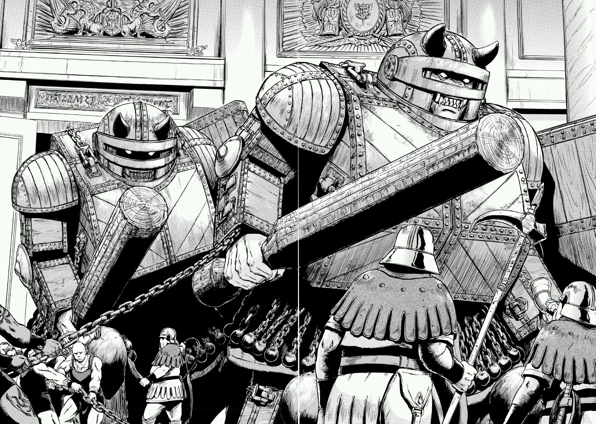 >>560642 Вроде деревянные,желехо слишком жирно было бы и тяжело. Сам думал о катапультах и огненных стрелах, но от стрел можно было бы просто броню водичкой полить перед боем, наверное. Ещё только маги в голову приходят, ведь иначе их просто ничем не пробить.