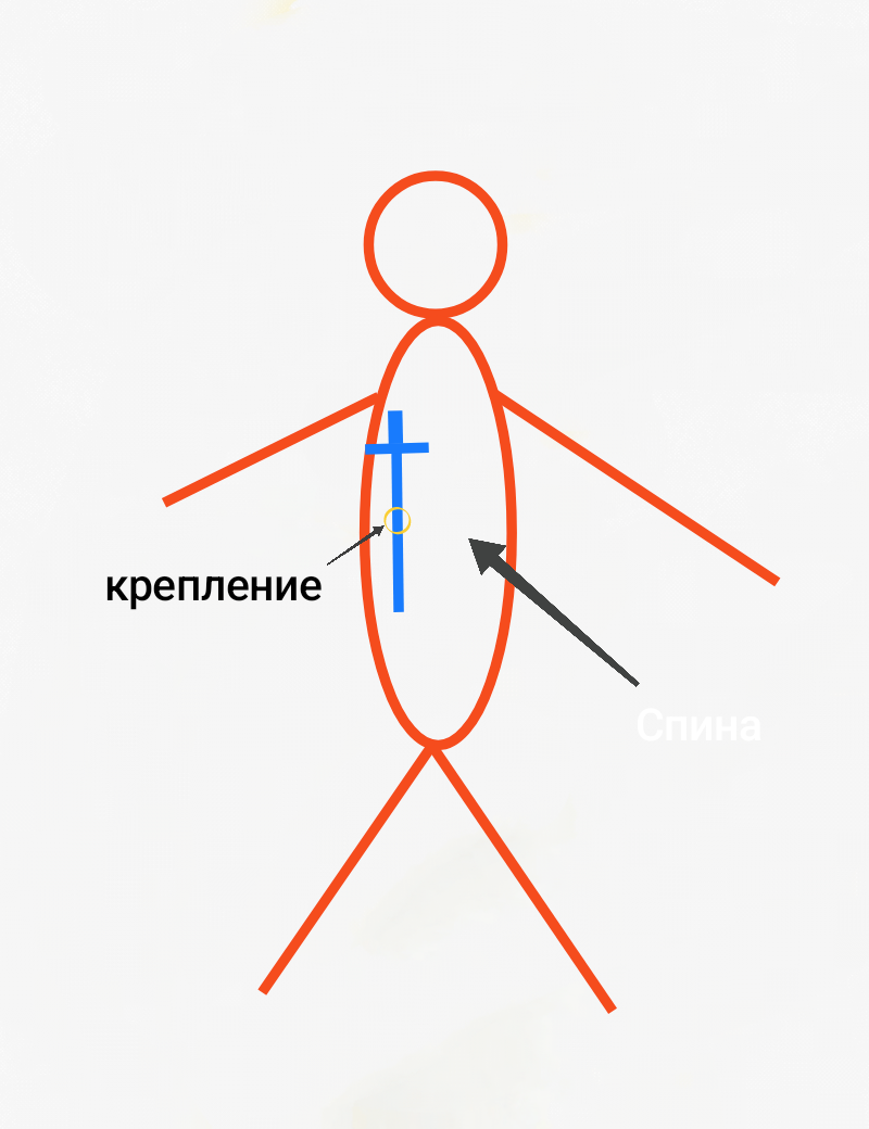 Ну, тогда вот так. Все просто, просто меч на спине должен располагаться так, что-бы рукоять была ниже подмышки. А крепление по центру ножен, так что-бы ножны на нем вращались как стрелка часов. Схему прилагаю.