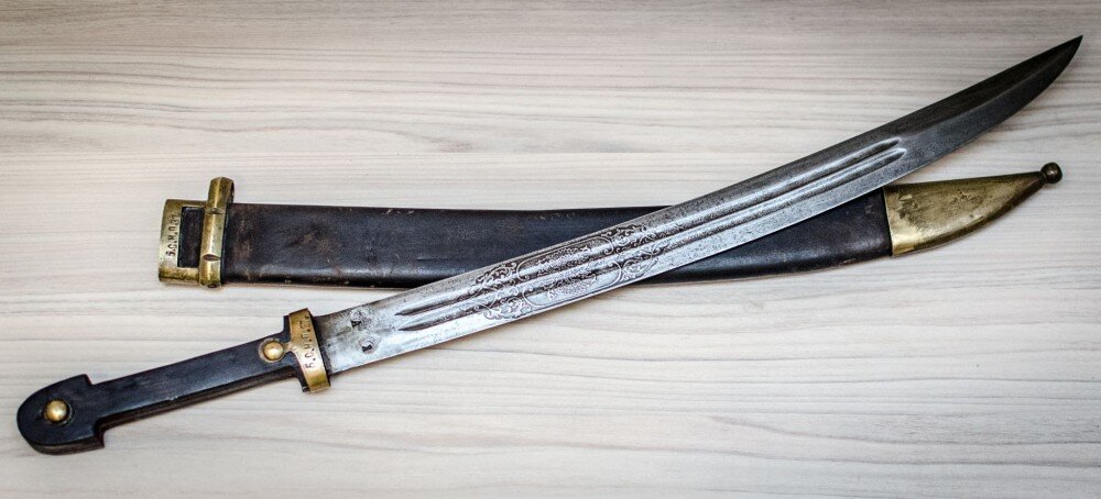 >>561612 Пала́ш (венг. pallos [ˈpɒloʃ] ← тур. pala «меч; кинжал») — рубяще-колющее клинковое холодное оружие с широким к концу, прямым и длинным (до 100 см) клинком, который может иметь двустороннюю (ранние образцы), но чаще — одностороннюю или полуторную заточку, со сложным эфесом; прямая сабля.