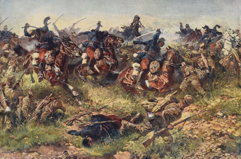 >>562970 >Цепляться боками на полном скаку как бы чревато. Скакать редкой цепью на плотный строй это форма самоубийства. >которые в случае пехотинца прилетели бы в его товарищей Пехота ниже и тоже может действовать цепью. >Даже удивительно что встречный залп не сдувает весь кавалерийский отряд, при таких-то раскладах. В зависимости от эпохи и построения ещё как мог сдуть. Лобовая атака кавалерии на подготовленную пехоту, начиная века так с 17, обычно заканчивалась для кавалерии весьма плачевно. >Ты или перемудрил с высказыванием или хуйню написал. Не пойму только что из перечисленного. Что не так? Массовый залп пехоты, редкую цепь всадников именно что сдует. Поэтому всадники пытались застать пехоту врасплох, пользуясь скоростью и манёвренностью. Твоя фантазия про редкие цепочки всадников скачущие в сторону пехоты и мастерски выбивающие пехотинца за пехотинцем из шеренги разбиваются о массовый залп пехоты во время которого в каждого из таких всадников выпустят десятки пуль.