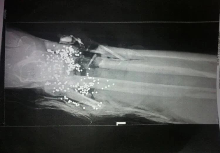 >>562767 У тебя на четвёртом пике пулевое ранение(это не картечь и тем более не дробь), если что. Что касается дроби - то даже крупная дробь не ломает кости, поражение идёт за счёт обширных поражений мягких тканей и сильной кровопотери. Убить хватит, но вот остановить разогнавшуюся тушу под сто кило - нет. Что касается картечи - то она тоже не особо ломала кости, хотя отдельные осколки и могли в них застрять. Так что да, остановить конную лаву когда она уже разогналась, можно либо перекрёстным пулемётным огнём, либо импровизированными укреплениями.
