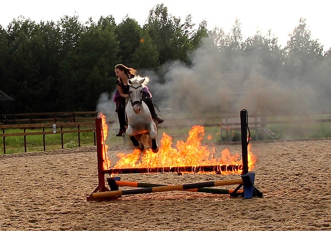 Ха-ха. Лошадь, в отличии от слона, идеальное животное для войны, потому что побежит, куда ее погонит всадник, даже если рискует поломать ноги или обгореть.