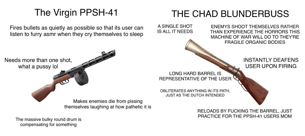 Алсо, я когда слышу про кое как сделанный огнестрел стреляющий дробью, то мне проще представить не стреляющий какими-то дробиночками мушкетик или что-то, а вот эту ёбу, которую заряжали чем попало нахуй, вилками, камнями, стеклом и прочей мелочью, которую физически возможно поместить в ствол.
