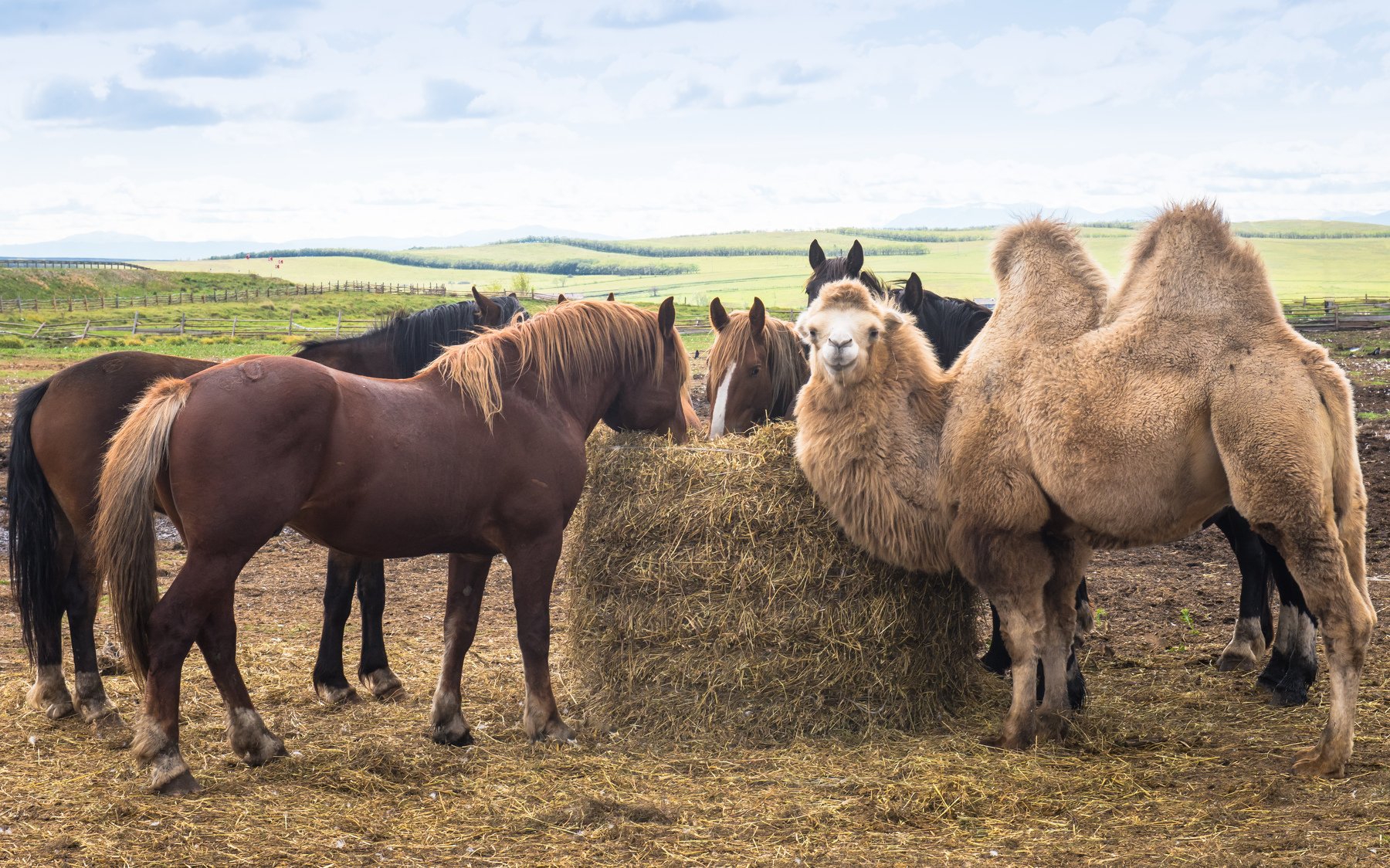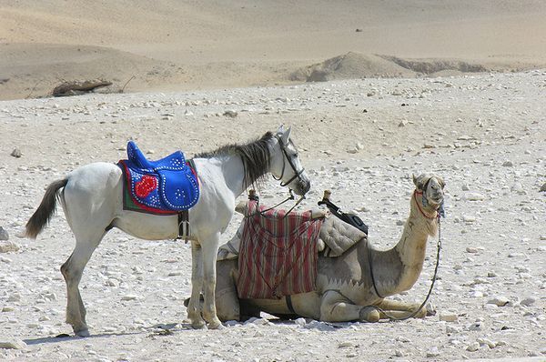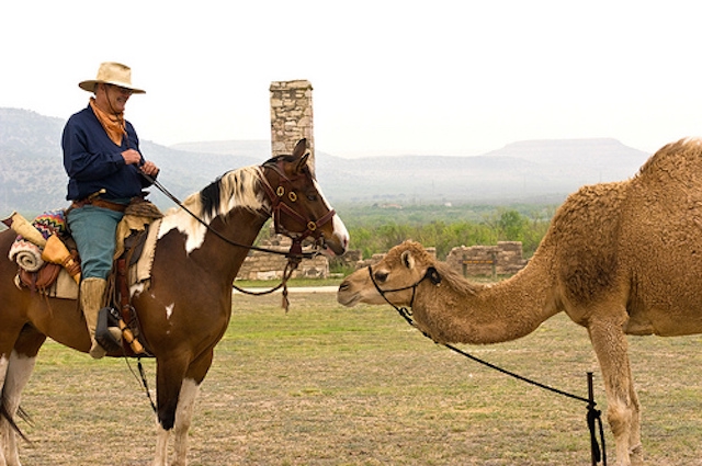 Лошади боятся незнакомой херни, но их можно приучить ко всему. С верблюдами как таковыми у них проблем нет. Лошади не рождаются совершенными солдатами, но их можно такими натренировать.