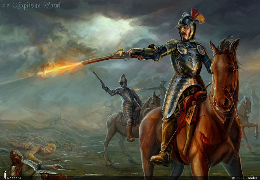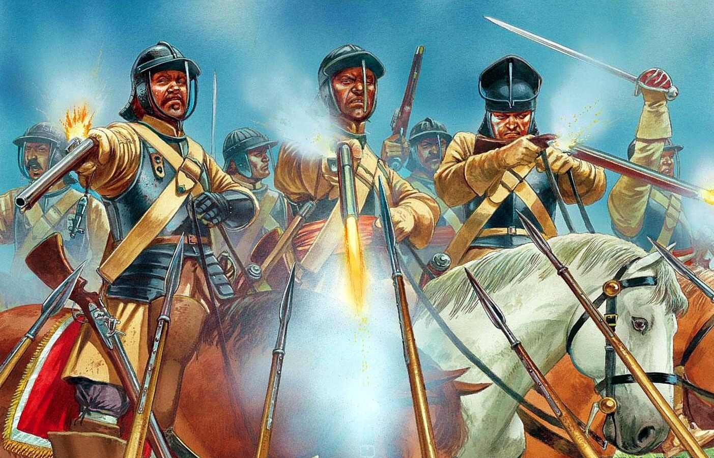 Лол, а как насчет Английской гражданской войны 1639—1660 годов. Русских и шведский рейтаров времен войн с Польшей? Как, насчет, сука, Рокруа 1643 года, где французская кавалерия перестреляла испанскую пехоту?