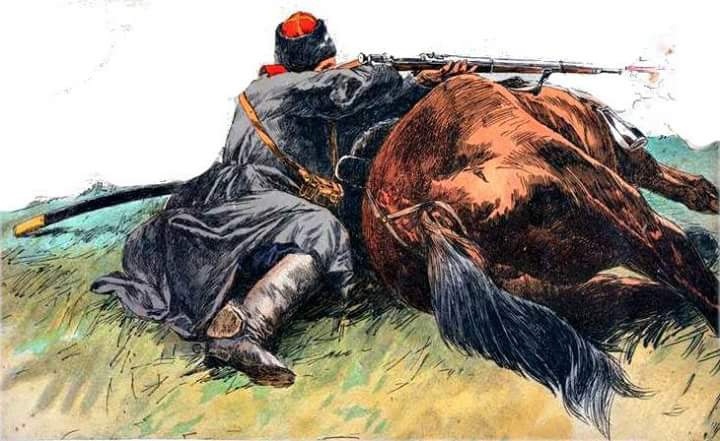 Лол, почему, бруствер из мешков точно также доступен для кавалериста. А лошадь обычно лежит таки живая. Ну и самое главное, винтовка - такая хуйня, что ее обладателя можно банально зарубить шашкой. Так что когда не выходит в стрельбу, всегда можно перейти в ближний бой, где всадники рулят. Вообще меня всегда поражало, что практически всю первую половину 20 века холодное клинковое оружие было актуальным (ну где окопная война не портила малину, впрочем и в окопах ПМВ в ходу были тесаки и окопные дубинки).