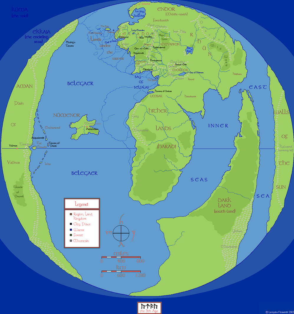>>571035 Экчуалли, все не так просто. Первая карта - это карта еще плоской древней Арды, освещаемой двумя светильниками, эта версия Арды была обустроена по простой логики - море, горы, равнина, море, горы, равнина, выженные земли рядом со светильниками. Затем светильники были разрушены и из ровных континентов нарезали что нарезали. сохранив общую канву (два континента на которых были установлены светильники по краям, остальное все расставлено поближе к центру плоскости, чтобы солнце не спалило ходящее вокруг диска) - это вторая эпоха В третью эпоху из диска Валары сделали шарик, убрав Нуменор и Белерианд под воду, а Валинор превратив в ... незаселенную Америку и вообще приблизили шар к нашей земляшке. Где-то еще читал, что образ континентов второй эпохи - это фантазии Толкиена вокруг разделения Пангеии на Лавразию и Гондвану, что-то общее в образах есть. Получается такая не совсем естественная эволюция, короче.