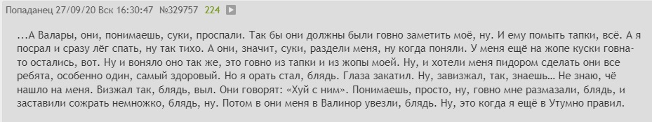 >>576490 Да последний толкинист реально поехавший какой-то, я думаю может попробовать какое то время не писать в тред ничего, пусть сидит и сам с собой общается как Голлум