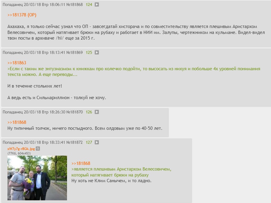 >>575158 >>575174 Опять плешивый Аристарх Венесович из хисторача, заправляющий рубашку в брюки, со своими охуительными историческими фактами и аналогиями, никому нахуй не нужными в разделе про ФЭНТЕЗИ