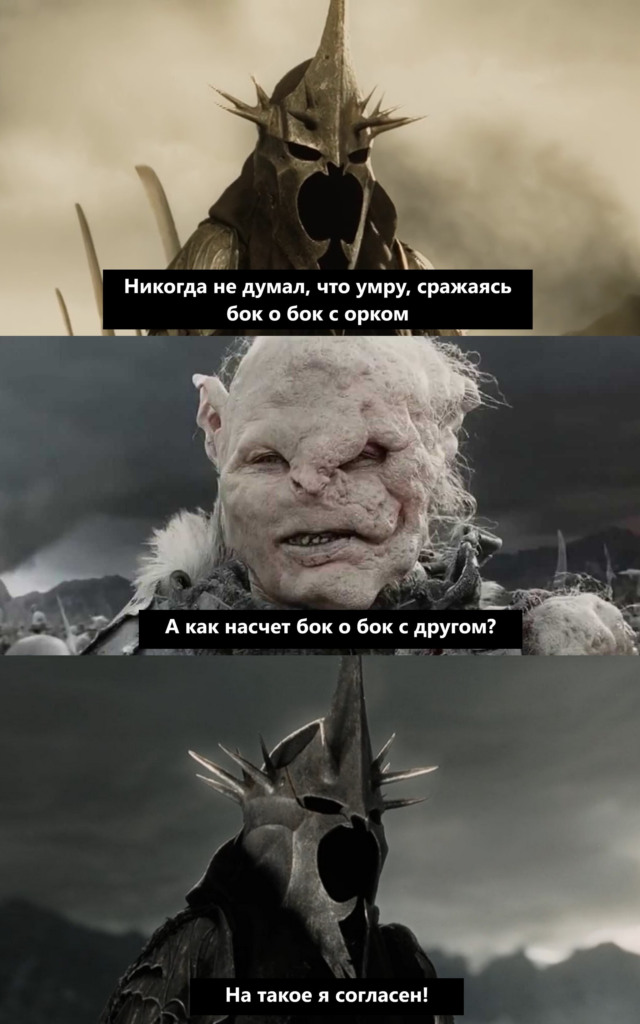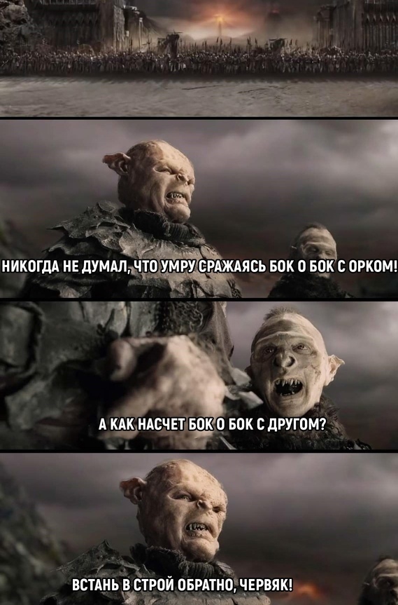 ВК такое то говно. Интересная только первая часть, а остальные смотрел с лицом лягушки, очень скучно. Самое смешное, что тогда же и вышел Гарри Поттер, с пеной у рта спорил в школе, что ВК лучше в разы, потом как я понял ГП оказался куда интереснее. Толкин очень душный, его читать невозможно, еле осилил, пожалел еще больше чем посмотрел последние две части. Говно, нахуй оно не нужно такое.
