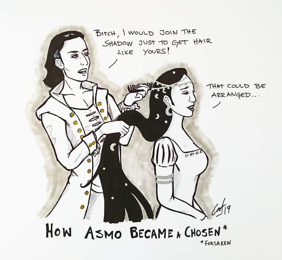 >Ну например, твоя семья давно водит знакомство с Кадсуане, уже несколько поколений. И вот бойкая бабуля дает понять, что пришло время думать, как жить дальше.