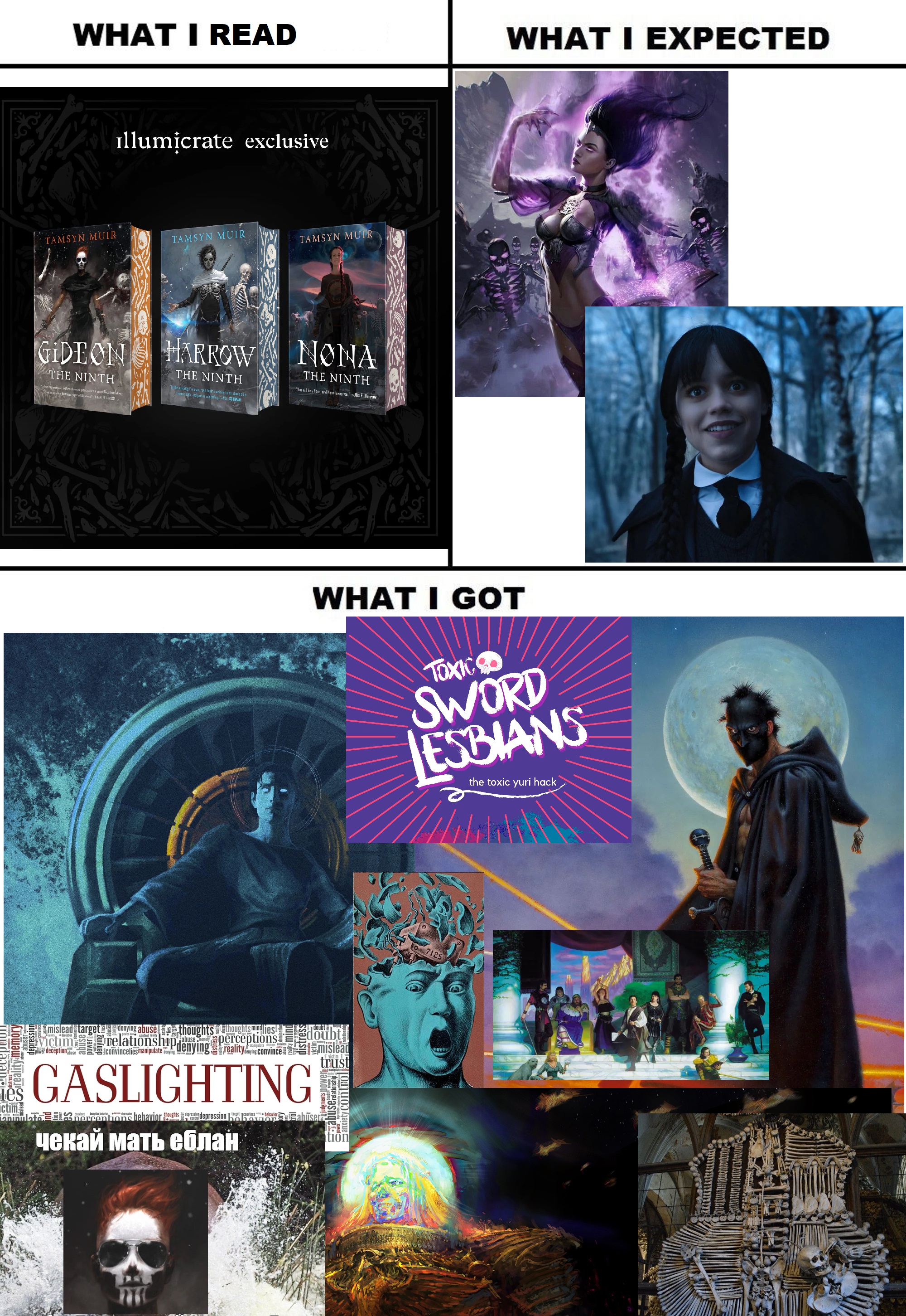 А вот если ты начнёшь перечитывать, то поймёшь, что абсолютно ебанутое созависимое взаимное влечение Гидеон и Харроу присутствовало всегда, буквально с первых страниц, и это даже в общем-то не особенно пряталось.