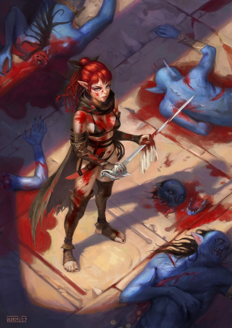А еще у них по канону должны быть тату: >их лица, руки и плечи покрывают многочисленные руны или тату, отпугивающие демонов, отмечающие победу над врагами или просто для украшения