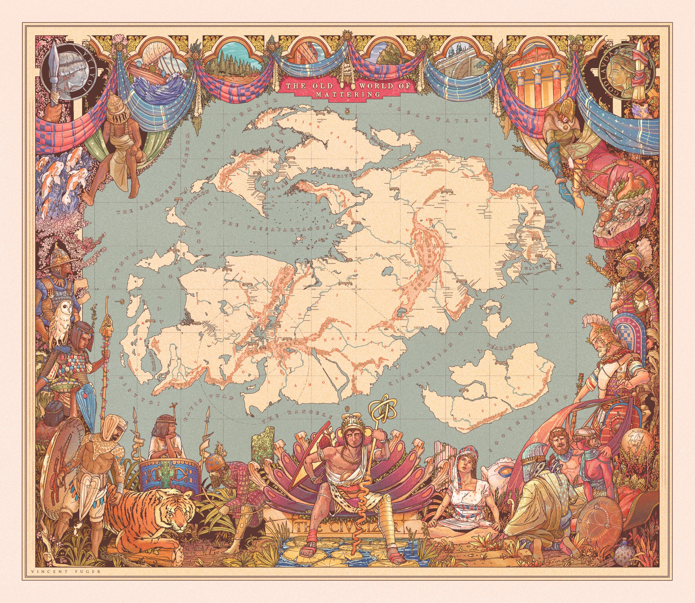 >>604345 >>604437 На самом деле карта может и подпортить впечатление от мирка. Например если это загадочный и неизведанный мир, а ты суешь людям подробную карту с границами всех государств, городами, природными зонами и угольными месторождениями. Частично это фиксится обрезанием карты с трех сторон и постепенным уменьшением количества топонимов ближе к краям, как у Толкина например.