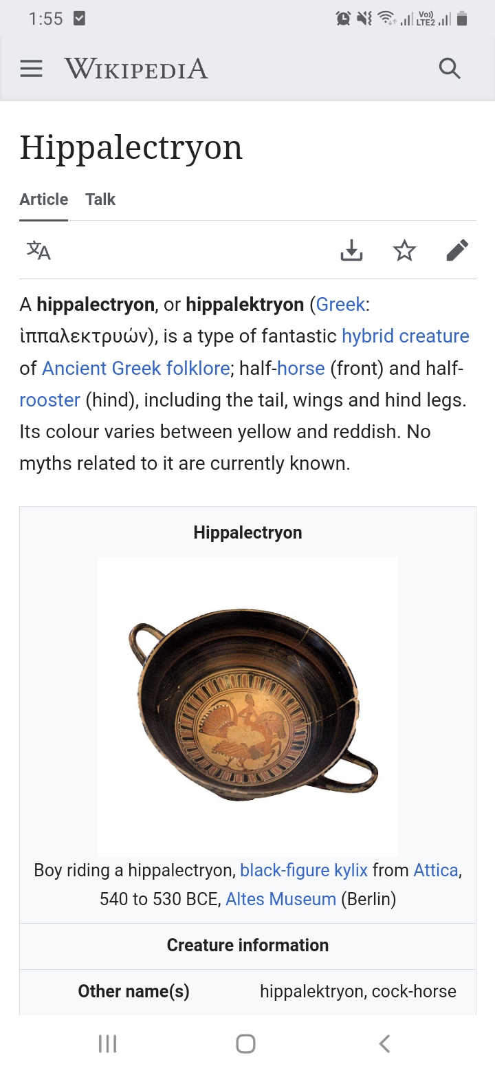 А кто из вас пробовал изучать мифических существ из легенд древних народов, чтобы потом их себе в манямирки сташщить? Вот я на википедии сейчас перебираю список таких у греков, на русском языке статья как всегда в 4 раза короче и с ошибками, так вот, вы возможно слышали о гиппокампах, морских конях с рыбьим гвостом на месте задней половины или о мантикорах, они не так популярны, как кентавры или пегасы, поэтому я полез смотреть что у них там ещё есть такого. Например у них были иппалектрионы – полулошади, полупетухи, были разные варианты кентавров, например не с лошадиной частью, а с ослиной, были кентавры с крыльями а также кентавры-гиппокампы, то есть передняя часть лошади с человеческим торсом на месте шеи с головой и с задней половиной рыбы.