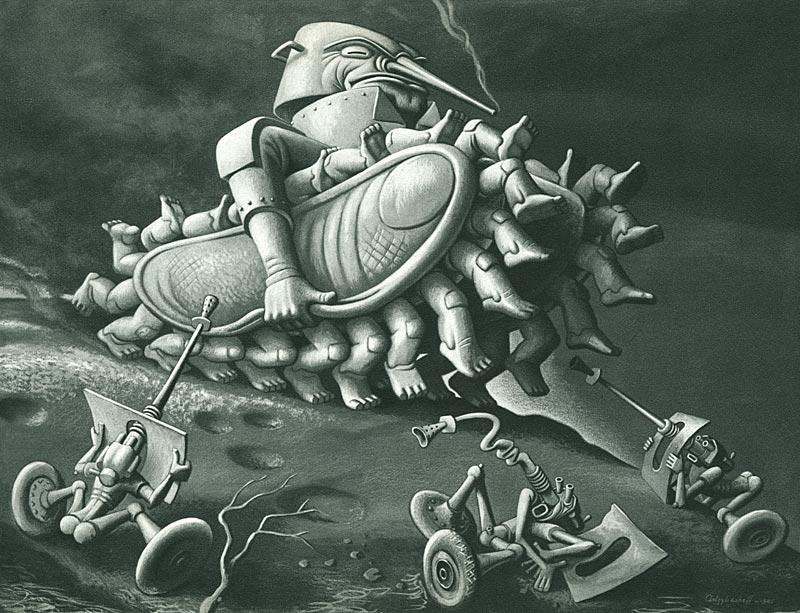 >>605157 Гигер совершил настоящую революцию - стал придавать живым существам черты машин. И тут все остальные художники очнулись - "а что, так можно было?!". Кстати, рисовал он именно лавкрафтовские хуёвины, включая прототип ксеноморфа, так что тут просто два в одном.
