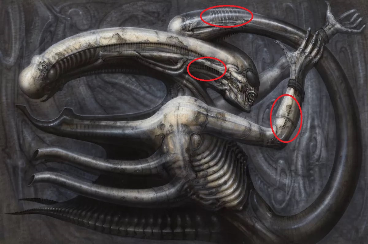 >>605216 Протри глаза, дядя. Решётки - это вообще самый главный элемент стиля Гигера, он лепит их на всё. Заклёпки тоже есть. >складчатость даже на кишках есть Сейчас бы сравнивать мятые кишки и индустриальные формы с картин Гигера. Да чего я перед тобой распинаюсь, сам Гигер прямо называл свой стиль "биомеханическим" и объяснял, что он хочет этим сказать. Кто хочет - тот загуглит, с ложечки здесь не кормят.