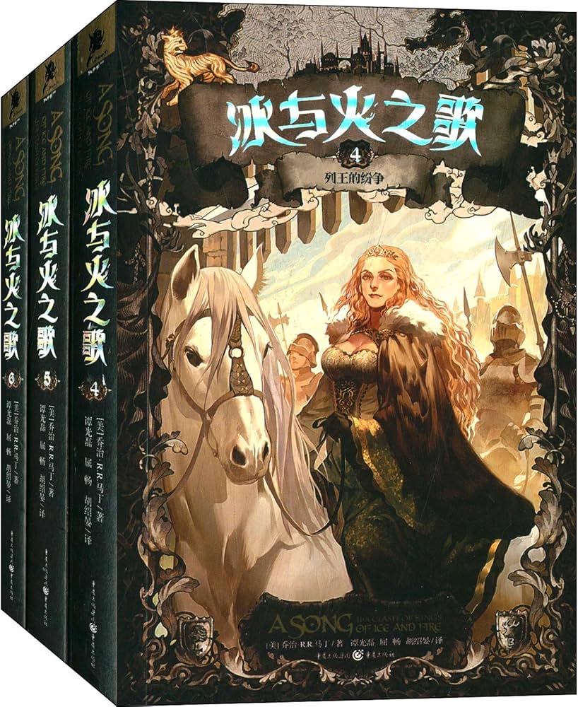 Viserys, was her first thought the next time she paused, but a second glance told her otherwise. The man had her brother’s hair, but he was taller, and his eyes were a dark indigo rather than lilac. “Aegon,” he said to a woman nursing a newborn babe in a great wooden bed. “What better name for a king?” “Will you make a song for him?” the woman asked. “He has a song,” the man replied. “He is the prince that was promised, and his is the song of ice and fire.” He looked up when he said it and his eyes met Dany’s, and it seemed as if he saw her standing there beyond the door. “There must be one more,” he said, though whether he was speaking to her or the woman in the bed she could not say. “The dragon has three heads.” He went to the window seat, picked up a harp, and ran his fingers lightly over its silvery strings. Sweet sadness filled the room as man and wife and babe faded like the morning mist, only the music lingering behind to speed her on her way.