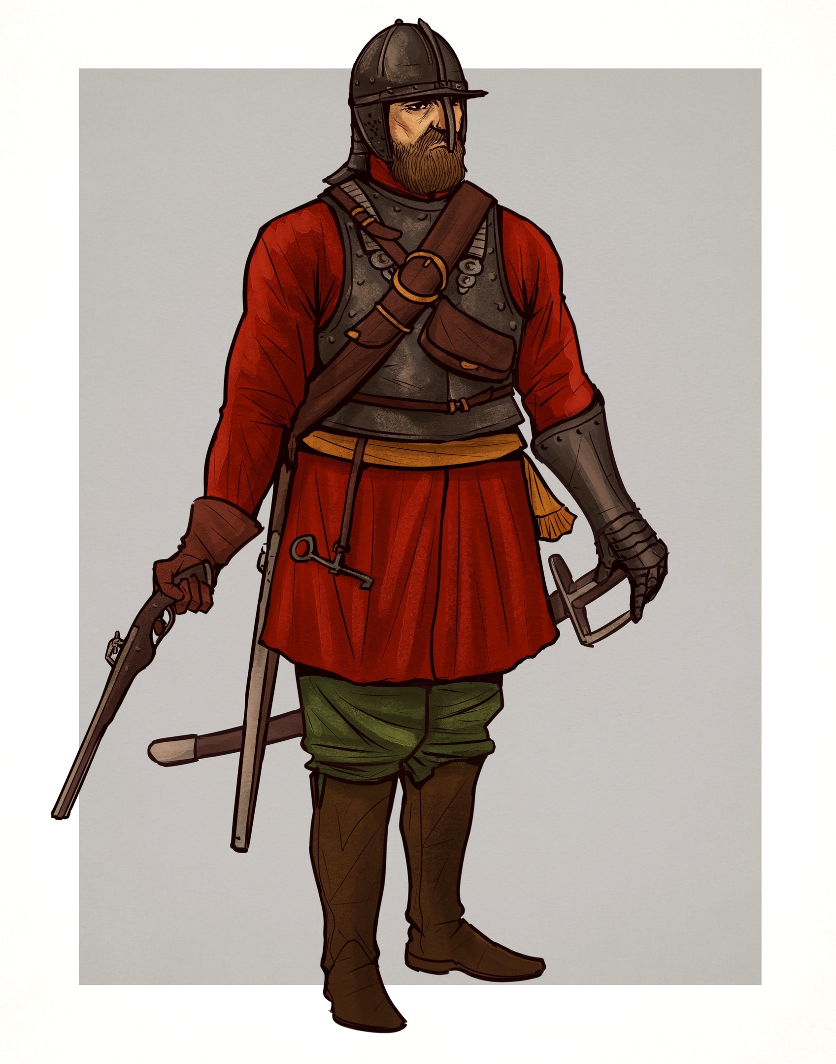 мне вот что подумалось. Встречаются поздние образцы 3\4 доспехов весом 40-50кг и с толщиной до сантиметра. те для ваших хваленых мушкетов неуязвимые. проблема одна дикий вес. те пользоваться таким может только мутант верхом на лошадке. Но...но у нас же фентези и в ней есть раса общепринятыми кодифицырующими признаками которой признаками которой является литерали чудовищная нечеловеческая сила и выносливость. Плюс они считаются мастерами металлургии для которых наклепать такое для своих бойцов не составляет труда. Да я про гномов-дворфов. у меня и мысль то эта появилась глядючи на иллюстрацию к крузу из реквест треда. Те там где у людей отдельные богатыри на лошади гном может массово воевать в таком чуде на своих ногах. И у нас получается пехотный строй практически неуязвимый к мушкетному огню. да и к арбалетному. лучному и всему прочему. поробуй таких остановить без маги не вступая в рукопашную. Нечем. вот еще одна причина почему в фентези мире может не появится огнестрел. Если там такие колобки в сантиметровой броне тысячными армиями ходят. Ранне огнестрельное оружие не сможет проявить свою эффективность.