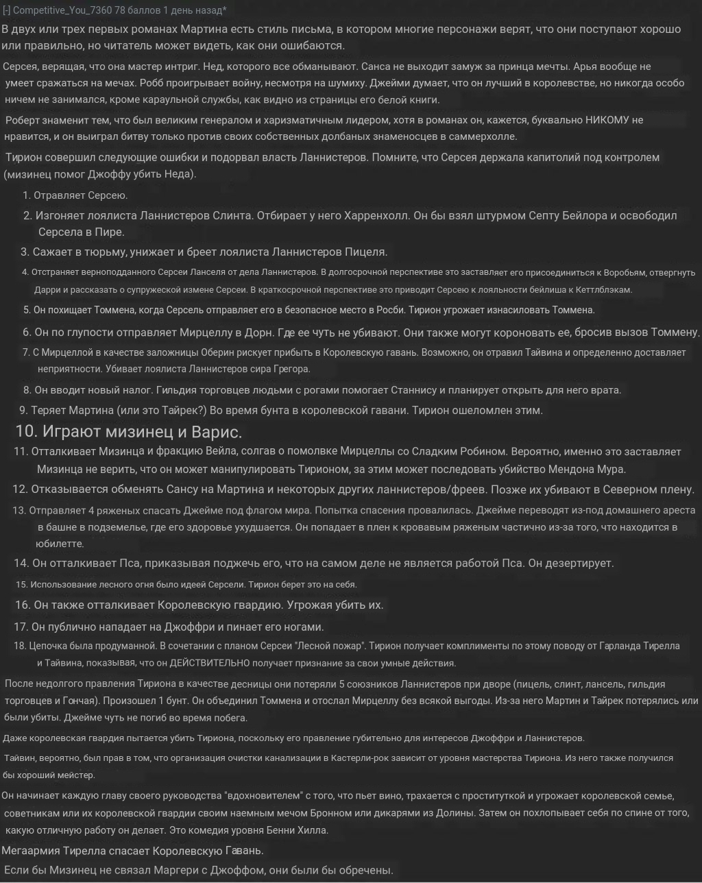 Прежде чем писать глупые вопросы, прочти пояснение: 1) Этот тред НЕ по сериалам Игра Престолов и Дом Дракона. 2) Этот тред НЕ ТОЛЬКО по Песни Льда и Пламени, в частности, не только по её основному циклу. Можно обсуждать и другие произведения автора (хотя этого практически никто не делает).
