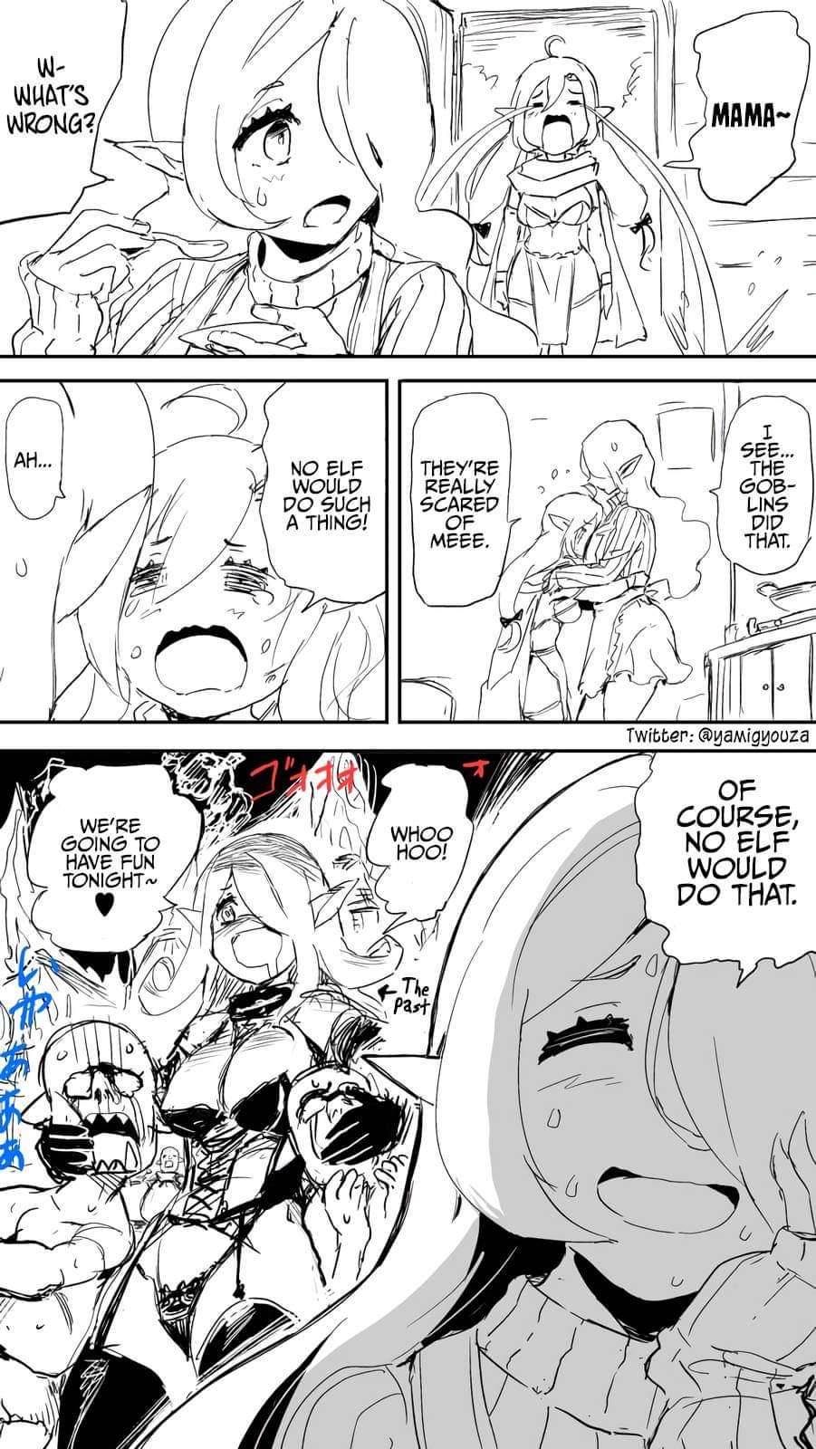 После победы над демонами и визита в Енде Фрирен решила возродить эльфийскую расу. Восстанавливать численность собралась классическим путём, без сомнительных методов клонирования. Для чего освоила магию повышения фертильности, и улучшила с её помощью своё тело. Что бы за раз вынашивать и рожать по несколько десятков эльфов, одновременно выкармливая и воспитывая полее ранние приплоды. Крафт же, согласился стать отцом возрождённой расы.