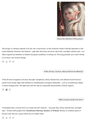 >>608939 Ну тут вряд-ли художник хотел оставить социальный комментарий, нарисовав уродливую эльфийку. Скорее просто так получилось у него случайно или он реально темных эльфов такими видит.