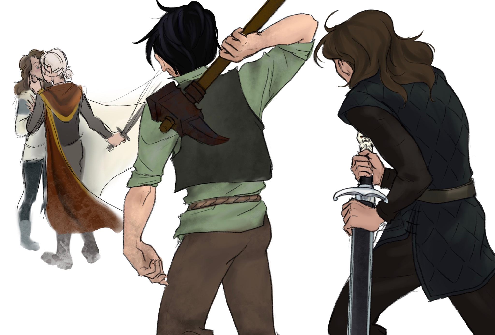 Я тут сидел и думал и знаете что ? Самый интересный романс в ПЛИО-это роман Мерривезеров-Тианы и Ортона. Просто прикиньте, в изгании, без земель, работая наёмником скорее всего, уродливый челик встречает 10/10, влюбляет в неё, женится, живут в нищете, да не в обиде. Но приходит Варрис, говорит может вернуть назад, но за услугу, Ортон соглашается ради жены, думает, что готов на всё ради неё и не рождённого ребёнка. Возвращается, проходят годы, приходит война, Ортон пересиживает войну, Варис говорит, что пора плотить, но не тебе, а жене. Ты едешь в столицу оставляя позади вашего любимого единственного ребёнка. Ланнистеры внезапно начинают дохнуть. Ко власти приходит ёбнутая дура и твоя жена втирается таки ей в доверие. Ты начинаешь получать посты, но жена больше с тобой не ночует, а когда она приходит утром ты видишь синяки в интимных местах. Тока не говорите мне, что это охуенный сюжет для спин-оффа.