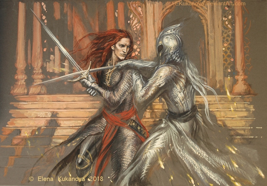 >>611594 Это один из обликов Саурона и некая чародейка-оборотень из народа орочек. Летний погожий денек когда-то в бесконечной дали Первой эпохи. Тишина и ленивое спокойствие, даже трубы Тангородрима не так уж дымят.