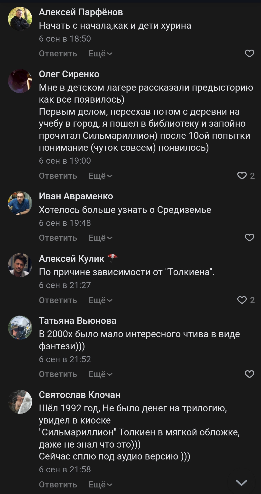 Но в определённом смысле, в реверсивном ключе восприятия с точки зрения того, для кого Толкин был первым автором, которого он прочёл, все остальные будут восприниматься как вторичное.
