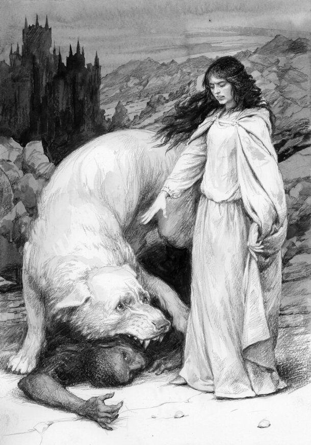 >>616068 "Тогда Моргот, видя ее красоту, возымел в мыслях недобрую страсть, и родился в сердце его замысел, чернее которого не бывало там с тех пор, как он бежал из Валинора. Так он был одурачен собственным же злом, ибо, глядя на нее, не лишил ее свободы, наслаждаясь своими тайными мыслями. Внезапно Лютиэн ускользнула от его взора и, окутавшись тенью, запела песню такой великой красоты и слепящей силы, что Моргот невольно заслушался; слепота поразила его, и он напрасно вращал глазами, стремясь отыскать ее взглядом. Все его прислужники погрузились в сон, сникли и погасли все огни; лишь Сильмарилы в короне Моргота внезапно вспыхнули сияющим белым пламенем; и под тяжестью камней и короны голова его склонилась, словно была в них вся тяжесть мира, его волнений, страхов и желаний, превозмочь которую не под силу стало даже воле Моргота. Тогда Лютиэн, подхватив свою крылатую оболочку, взмыла в воздух, и голос ее хлынул, подобно дождю, изливающемуся в бездонные черные омуты. Она набросила свой плащ на глаза Моргота и навела на него сон, черный, как Кромешная Тьма, где он бродил когда–то. И вот он рухнул, подобно сорвавшейся с гор лавине, и, с грохотом скатившись со ступеней трона, распростерся на дне преисподней. Железная корона с громким стуком скатилась с его головы. Все замерли."