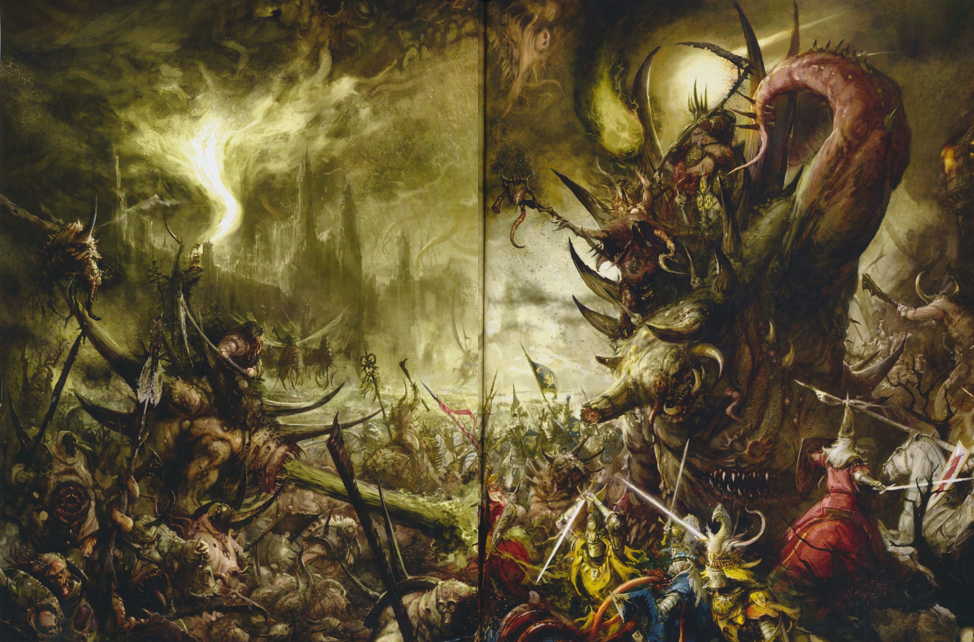 >>616033 На самом деле все не так очевидно. Естественно, они были вдохновлены хаосом у муркока: "Сама идея возникла из того, насколько Брайан был поражен богами хаоса из цикла "Вечного Воителя" Майкла Муркока-" "Муркок оказал сильное влияние на идеи Брайана по развитию Warhammer. Миры Хаоса и целые элементы из 40k происходят из историй об Элрике и Хокмуне." - Тони Экленд, один из главных художников WH в 80-ые Но кроме каких-то общих образов сложно сказать что конкретно было украдено, ведь у Муркока очень блеклые невнятные фантазии, а мир вахи сразу же задумывался как плотный с кучей подробностей.