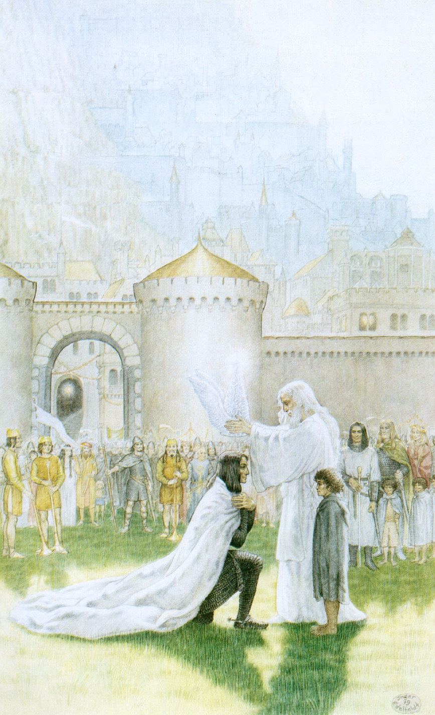 Еще один штрих - на короне Арагорна тоже можно увидеть Солнце вокруг изображения дерева.