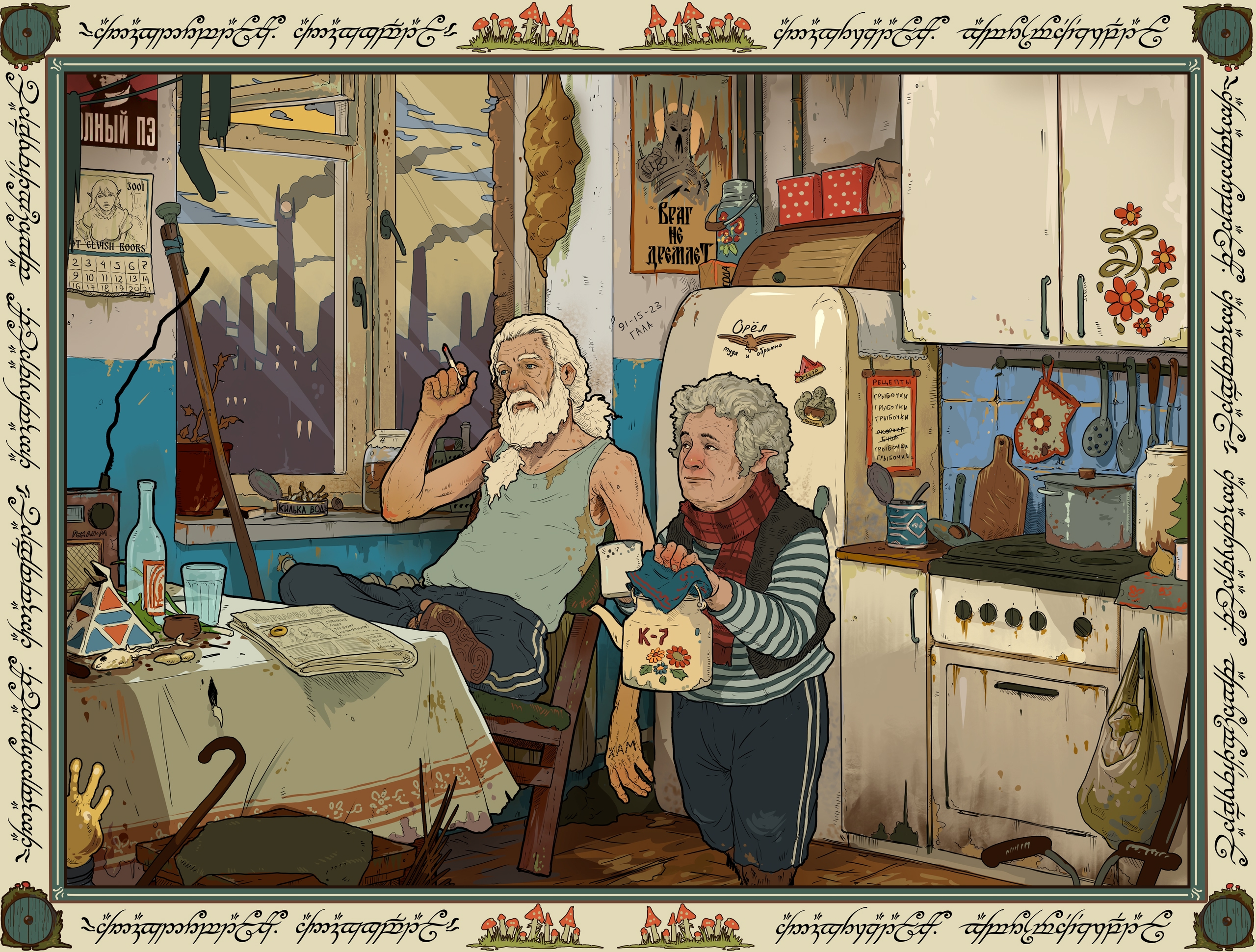 ВНЕЗАПНО на моей памяти почему-то никто не пытался критиковать Толкина за пропаганду нездорового образа жизни. Главным образом - курения. Сам автор был злостным курильщиком, как и множество ветеранов войн, и большинство его героев тоже курильщики. Или я плохо искал? По-моему, с точки зрения "поколения снежинок" и прочего соево-веганского унылого лобби Толкина надо отменить уже только за это!