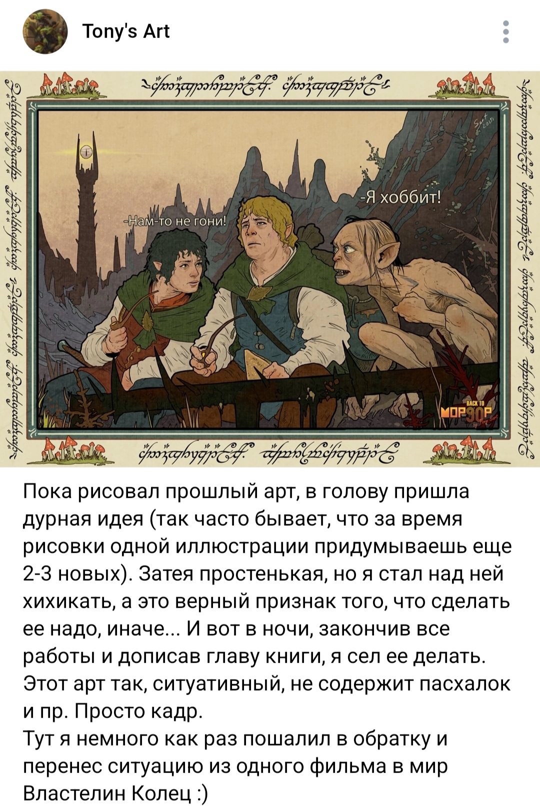 >>616601 как можно критиковать того чела который является уже классикой литературой и это книга про каких то хоббитов,вот вот.Вообще вк это какая притча.Зло тут не в прямом смысле а символизирует негативные стороны больших изменениях что на момент для толкина являлось индустриализация и саурон и саруман являются проявлением негативных черт большой жизни.Но сам Толкин говорит в произведении что надо именно принять эти изменения но не прогнуться их а взять под свое русло но и помнить и не забывая полностью свои обычаи и культуру Сам Толкан довольно был очень эрудирован и его письма намного интереснее читать чем само ВК ВК вообщем и повезло что оно вышло после второй мировой войны и нормально легко в после военные реалии,можно сказать что толкин угадал настроение толпы и ВК был очень легко принят людьми до которых дотронулась война Можно сказать что вк никогда не устареет в отличии от фильмов Джексона,когда сама трилогия очень прямолинейная и убирает всю глубину