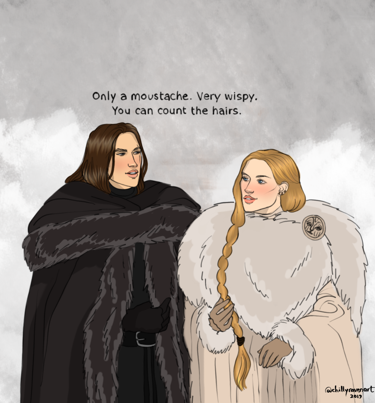 Почему у Вал и у Жона не один цвет кожи, лол ? Мне нравится рисовка, но это какая-то совсем дичь, не говоря о том, что человек с таким тоном кожи при многолетней зиме выжить не сможет. От дефецита витамина Д умрёт.