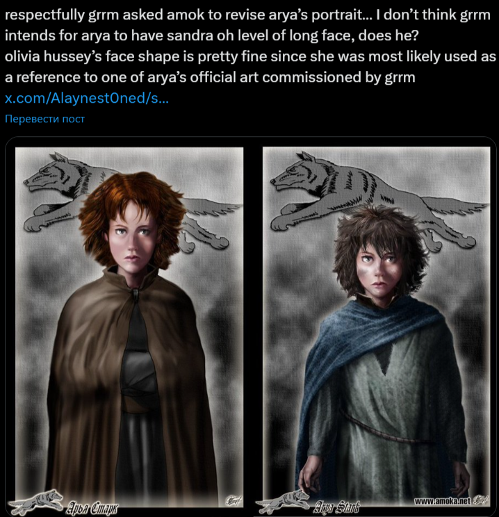 >>613835 >Да !!!!!!!!!!! Нет. Когда Амок работал над официальными портретами персонажей ПЛиО под личным руководством Мартина, он такое лицо нарисовал Арье и прислал Джорджу, тот сразу сказал ему всё переделать. Слева то что Амок нарисовал изначально, справа переделанный вариант.