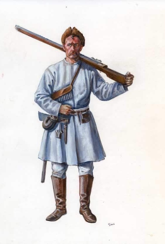 >>614157 >>614158 >>614169 Даже запорожские казаки в 16-17 веках носили в основном белое, серое или коричневое некрашенное сукно (сермягу):