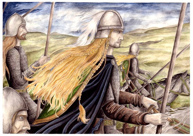 >>616993 Their horses were of great stature, strong and clean-limbed; their grey coats glistened, their long tails flowed in the wind, their manes were braided on their proud necks. The Men that rode them matched them well: tall and long-limbed; their hair, flaxen-pale, flowed under their light helms, and streamed in long braids behind them; their faces were stern and keen. In their hands were tall spears of ash, painted shields were slung at their backs, long swords were at their belts, their burnished skirts of mail hung down upon their knees.