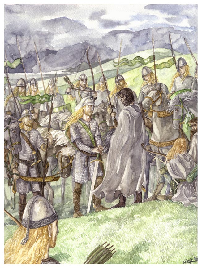 >>613819 В книге они все трое получили кольчуги, шлемы и щиты из королевской оружейной в Эдорасе, а на иллюстрациях к ВК это почти нигде не показано. Кольчуги эльфы Толкина носили, это их основной доспех (там почти у всех остальных народов тоже кольчуги, потому что типа раннее средневековье). У гондолинских эльфов в 1й эпохе были также латы.