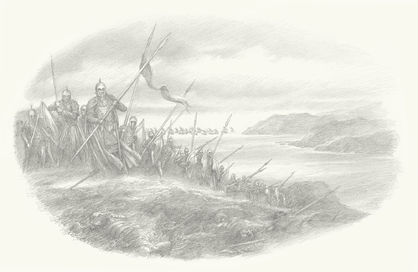>>619390 В целом да, не самая лучшая идея, рядить этих ребят в околоантичное бесштанное нечто – по меньшей мере странно и анахронично. Вообще, мне лично ранние ВС Нуменора видятся как этакие норманы, то есть в первую очередь высокомобильные экспедиторы и только потом бравые вояки – короткие кольчуги, полузакрытые шлемы а-ля Гёрмундбю, низкие плотные ботинки, рубахи и штаны из окрашенной ткани, ибо кожа это ересь, ну и оружие соответствующее – небольшие мечи и топоры, короткие крылатые копья, лёгкие круглые щиты и малые составные луки.