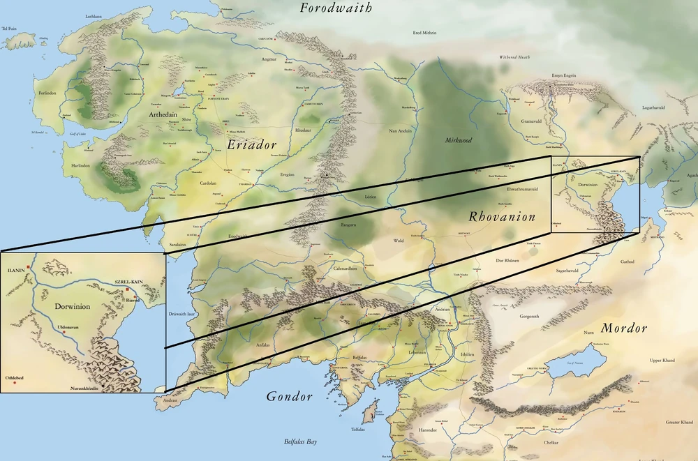 Территория была отмечена на карте Полины Бэйн, одобренной Дж. Р. Р. Толкином.
