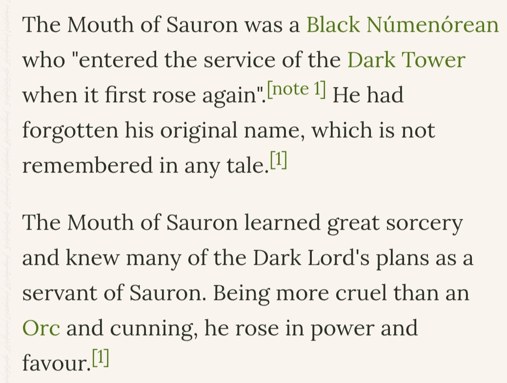 >>617362 В заметках Толкина было что Саруман заново открыл это или прочитал в преданиях, что во времена Моргота были гибриды орков и людей, когда люди жившие под властью Моргота опустились до уровня орков и добровольно скрещивались с ними.