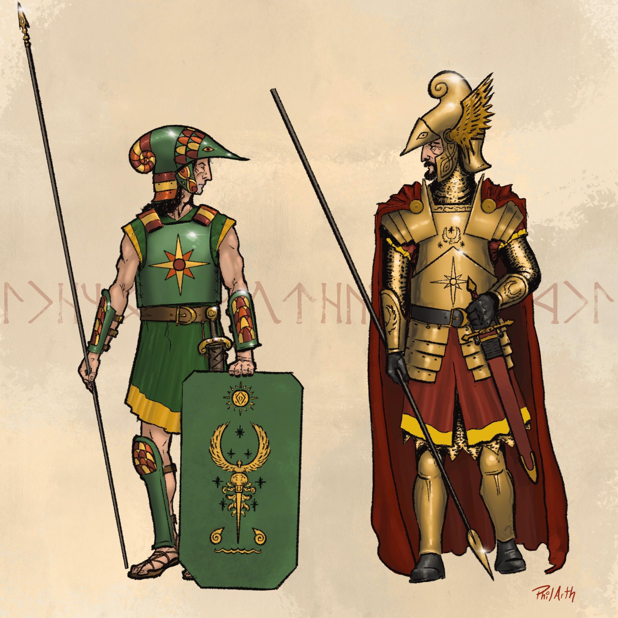 Я рассуждаю чисто логически, не претендуя на истинность. И логика мне подсказывает следующее: - нам известно о патологическом желании нуменорских властителей, а затем и всех нуменорцев жить подольше; - нам известно что технологии острова, благодаря умениям жителей, благосклонности богов и общению с эльфами были на значительном уровне; - нам известно о том, что основа армии нуменорцев тяжелая копейная пехота, отсутствие конницы, любовь пострелять в том числе из зачатков огнестрела; - нам известно что Гондор копировал Нуменор, но немного отставал от него технологически; - нам известно что Нуменор чудовищно богат; - воевать приходилось с чудовишными ордами плохо вооруженных, но здоровенных противников (помимо орков, незабываем про троллей, драконов и прочую хтонь); -не забываем про климат, поэтому никаких голых задов.