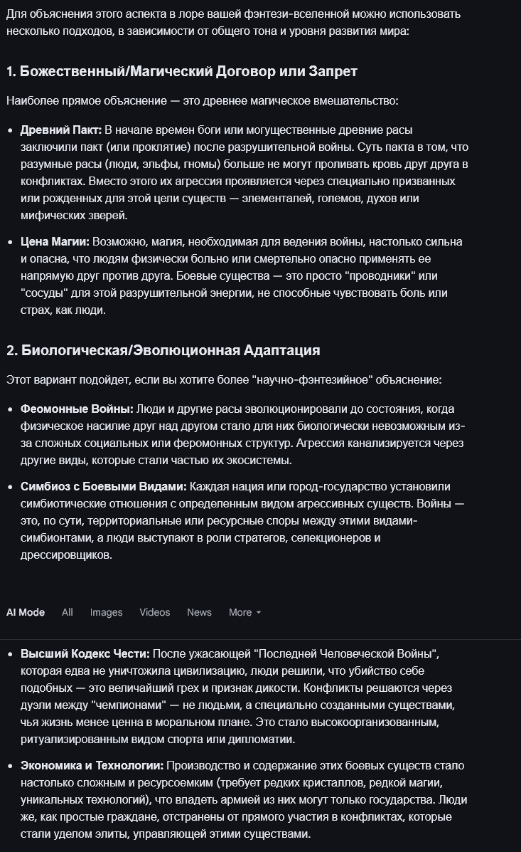 >>625413 > то есть реальное творчество станет ещё сложнее найти в куче нейрослопа Зачем тебе, потребителю-обывателю, искать реальное творчество? Ведь сам признал, что вроде и ничё так. Хороший текст будет хорошим независимо от метода его производства, как и хуевый — хуевым. Может ещё предложишь бугуртить от того, что писаки используют ПК вместо пишущих машинок или пера с чернилами? >>625429 > Самый характерный маркер: нейросеть всегда забывает что было в прошлой главе, а потому произведение превращается в Путь Самурая, где важен только Путь вперёд, а не то что пройдено. У гемини 1 лям токенов доступно, что равняется 1 атшному томику.