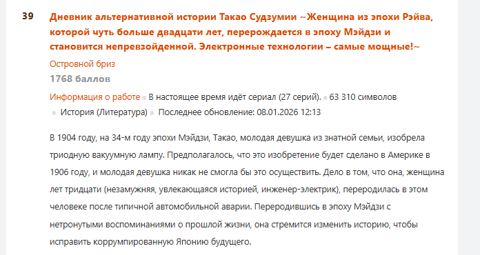 На наро если не копать глубоко, все еще в основном параша. Все таки зря сайт не сепарировал мужское днище от женского, мешанина из принцесс-разведенок ищущих себе рыцаря, и очередных симуляторов покорителя данженов с гаремом заметно деморализует в плане попыток что-то искать на почитать. Можно конечно сунуться на альфаполис, и какие там еще есть японские самиздаты - но это не путь самурая. И мне лень. И они хуево переваривают машинный переводчик.