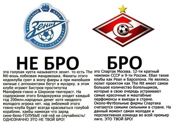 Абсолютное уважение в адрес этих двух клубов в данном треде. Не потерплю никаких гадостей в их адрес. Вопрос будем решать на самом яичном уровне. Вместо бессильной злобы, сами бы взяли и показали на что вы вообще способны. Спартаку даю скидку - они хотя бы пытаются