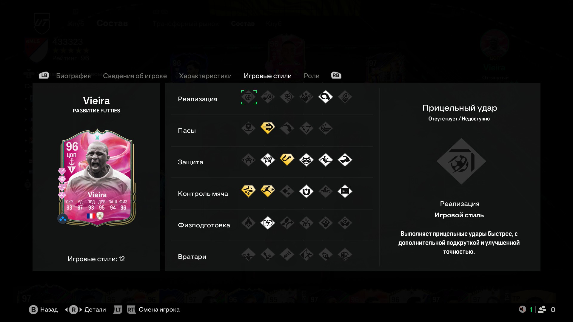 >>3376189 Это и есть те самые скиллы и способности, они же трейты и плейстайлы. Например, на карточке "лоха" их 3: финессы, техничность и рапид (перечислил сверху вниз). Финессы дают большую точность при закрученном ударе внутренней стороной стопы, с техничностью понятно, а рапид дает большую скорость, но, емнип, при определенном типе ускорения. Тоже самое есть и в ПЕСе, там они навыками называются.
