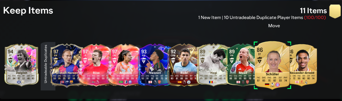 Не поиграл 10 дней и начало сыпать. Пеле с Тюрамом, этот неизвестный мне чел за 600к, Скелли за 300, которого я благополучно проебал, взяв в пике другую карту. Ну пох, Тео на лз никто не заменит, а в опорке Гуллит 94, Родри тоти и Вийера.